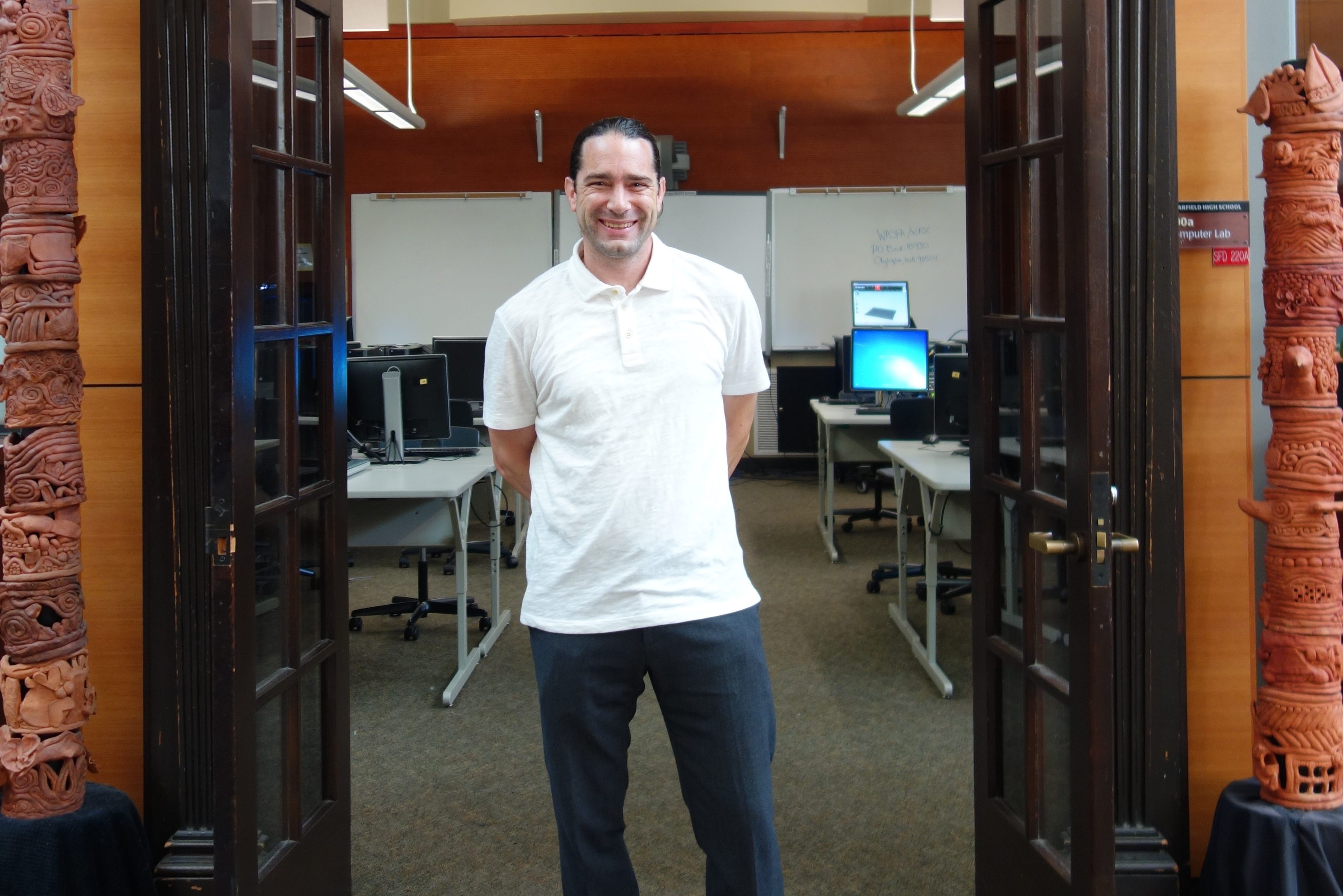 Mr. Manzin is a GHS alum, class of 1993. In fact, Janet Woodward, Garfield’s former librarian whom is he replacing, was once his Washington State History teacher! His first school librarian job, at Emerson Elementary, was formerly held by his mother for 18 years. So his connections to the community are immense!