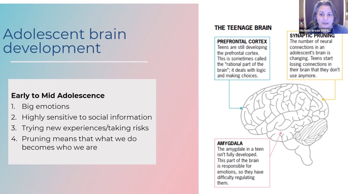 - Some 40 attendees participated in “Parenting Your High Schooler,” a workshop with breakout sessions created for the PTSA by the Program for Early Parent Support (PEPS). Content focused on science of the teen brain and strategies to reduce conflict, such as sharing decision-making power. Breakout sessions featured discussion led by PEPS facilitators. Materials from the meeting will be available to registrants.